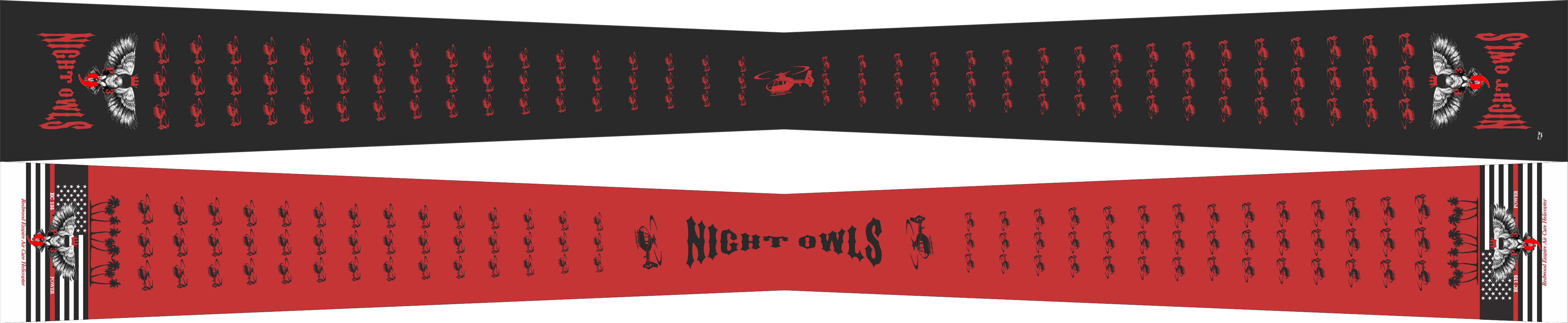 Imperial Airport Reach 9 Company - Imperial County Flight Scarf - Black Background with Red logos, Opposite Side Red Background with Black Logos - Night Owls