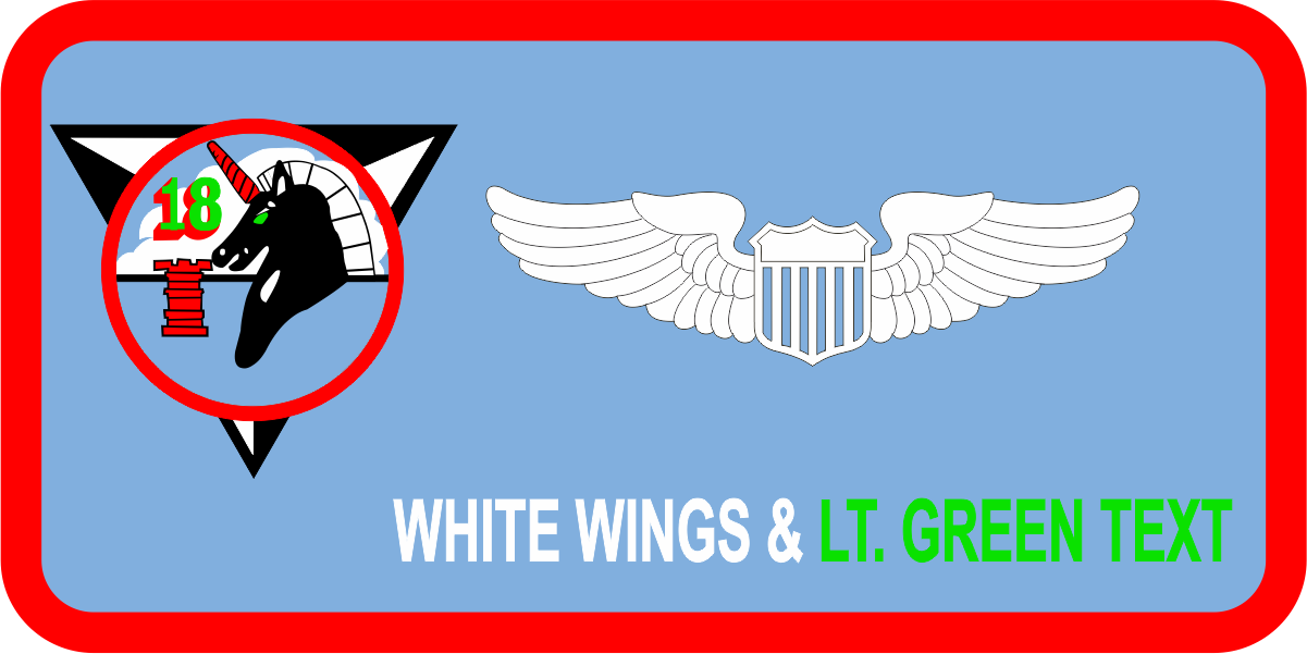 USAF Academy CS-18 - Name Tag -- Light Blue Background, Red Border, White Wings & Lt Green Text, 18 Triangle Logo