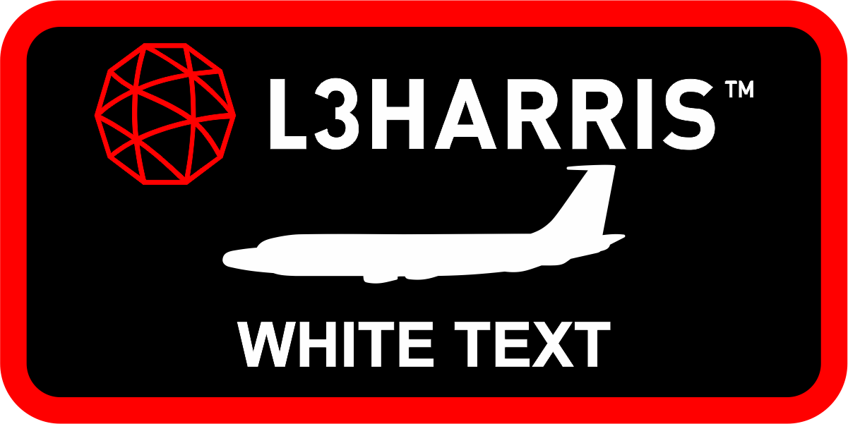 L3HARRIS Technologies Name Tag - Black Background, Red Border, Red Globe, White RC-135, White Text