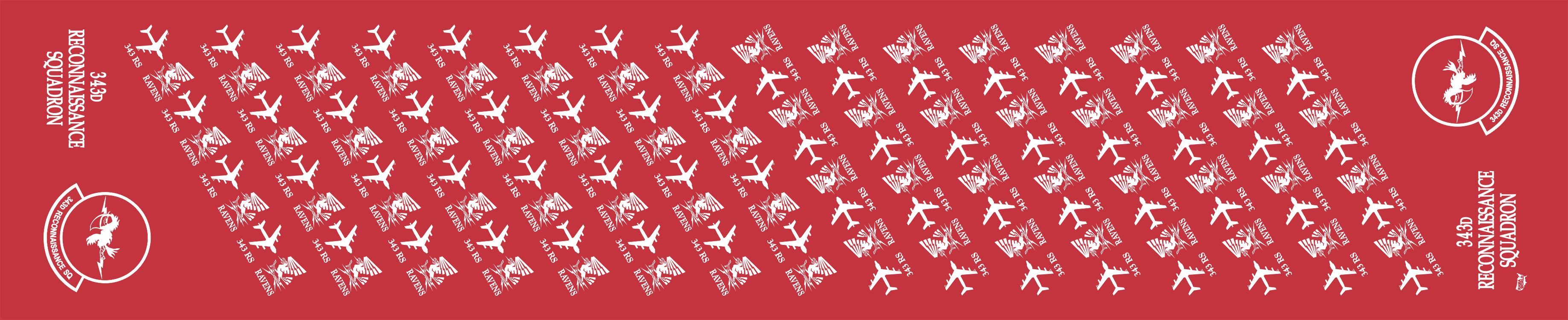 Offut AFB 343 RS- Red Scarf with White Text & 343 RS Patch on the ends of the Scarf and the RC-135R Aircraft & Ravens Emblem throughout the Scarf. Size: 5" x 40".
