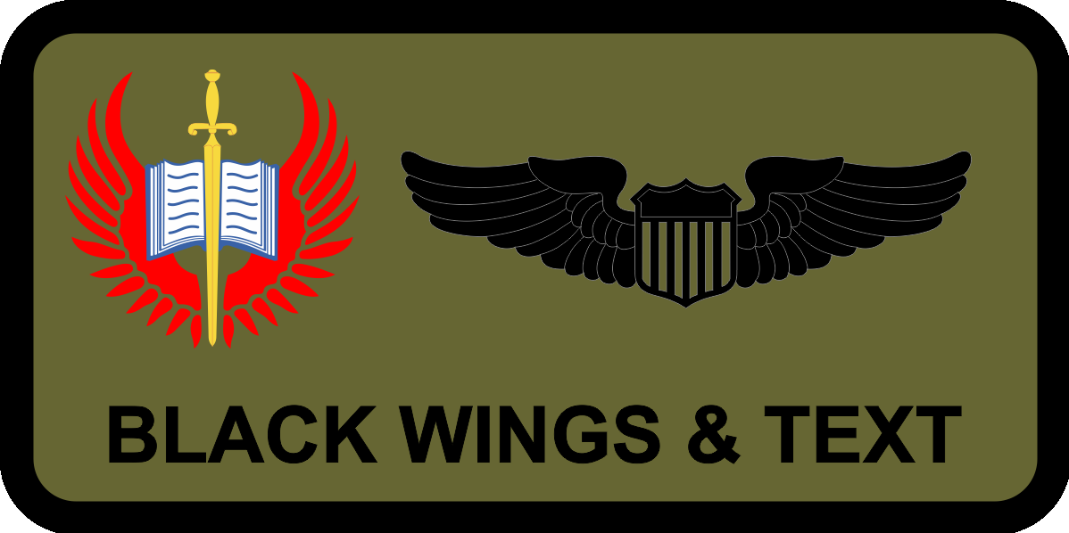 Hurlburt Field 19 SOS Name Tag - OD Green Background Black Border Black Wings & Text, Red Wings & Yellow Sword Logo