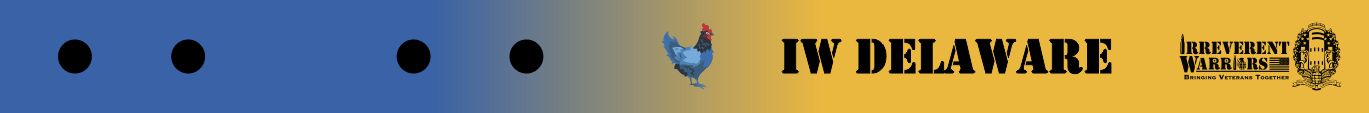 Irreverent Warriors Delaware Bag Tag. Blue and Yellow Fade With Blue Hen Emblem on the Left of Text and Irreverent Logo on the Far Right. Size Measures 13.25" x 1" When Snapped.