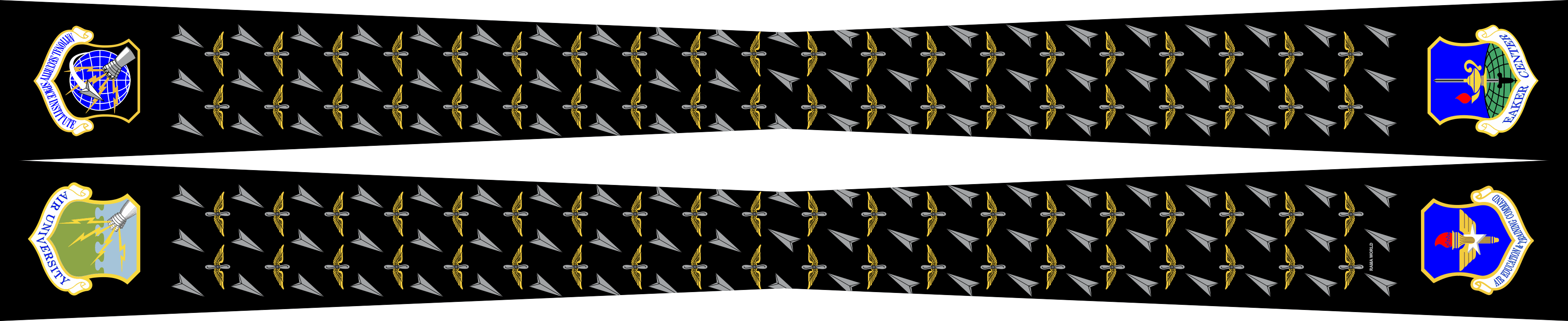 Peterson AFB NSSI Flight Scarf - Black body with gray deltas, gray and yellow propeller wings alternating over the body of the scarf, patches on each end.