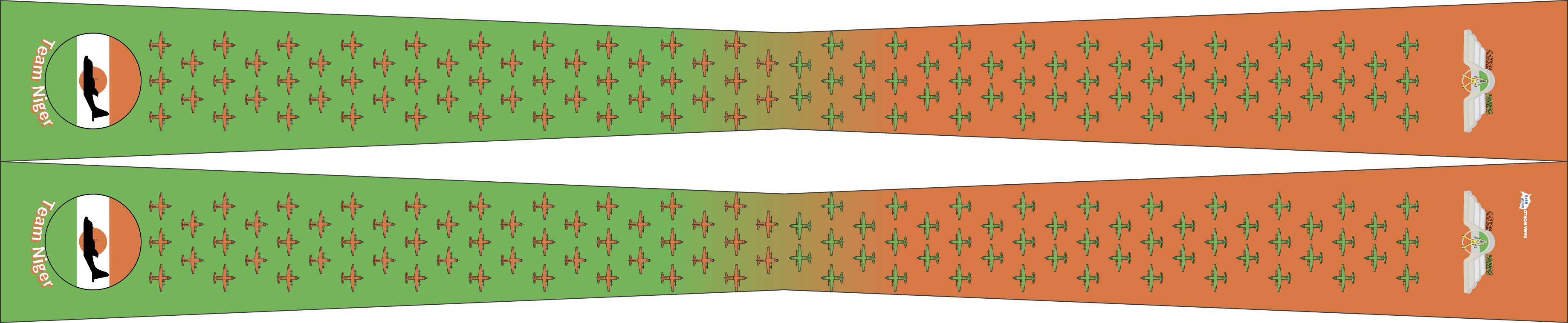 OGMA Industria Aeronautica de Portugal Flight Scarf with Green to Orange fade, "C-130" Aircraft Pattern along the Scarf and Patches and Wings on the ends.