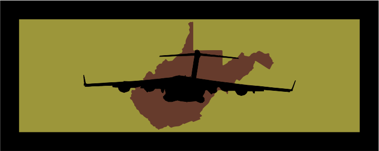 West Virginia ANG 167 AS - C-17 Flying Through the West Virginia State Outline in OCP Colors 2.5" with velcro