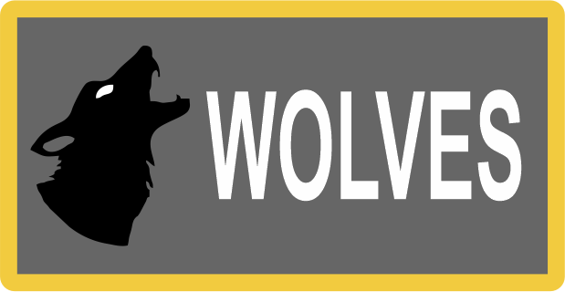 Elmendorf 3 OSS Gray Background, Yellow Border, White Text, WOLVES with Wolf Howling Pocket Tab 2" with velcro