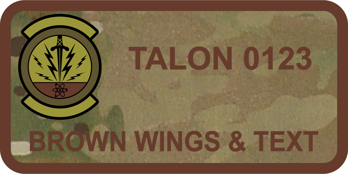 FE Warren AFB 90 MSOS OCP Name Tag - OCP Background, Spice Brown Border, & Text, with Patch Logo on the Left