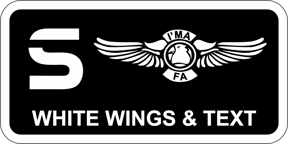Stratolaunch Name Tag- Black Background, White Border, White Wings & Text, Stratolaunch Large S Logo