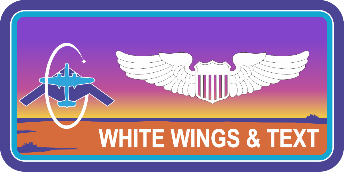 Edwards AFB - Test Pilot School  - TPS Class 25B Sunset Name Tag  - Purple to Yellow Fade Background with Purple Border, White Wings & Text, with Two Aircraft